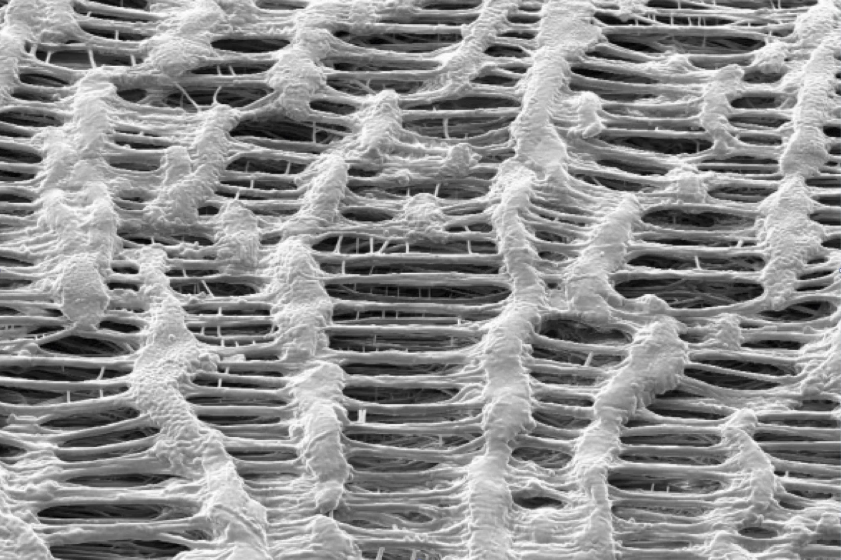 100 % reines ePTFE in einer monoaxial gereckten Netzknoten-Faserstruktur