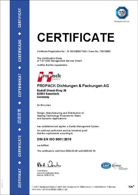 This year, ProPack AG has once again demonstrated in an audit that it meets the strict requirements of DIN EN ISO 9001:2015.