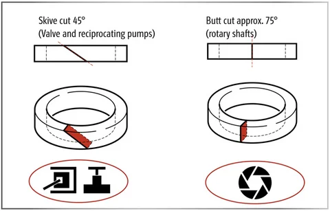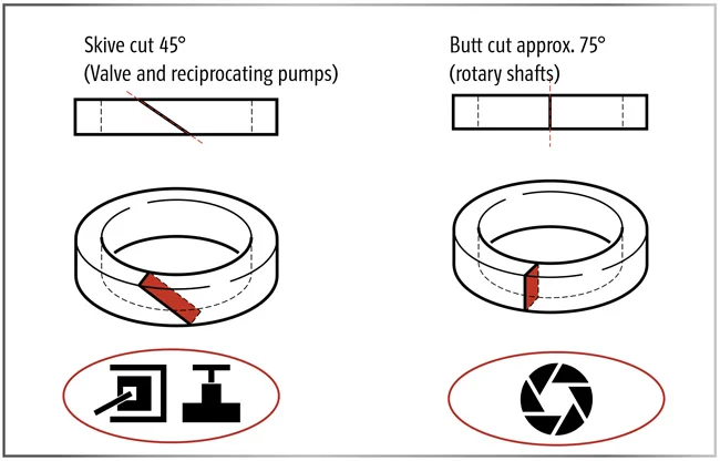 A butt cut is recommended, if a skive cut is chosen the ring should be pre-compressed in a die form.