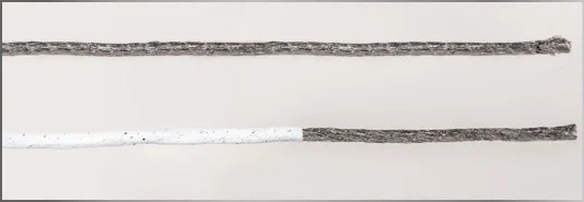 Die Extrusionsfestigkeit der geflochtenen eGraphit Packung hängt vom Verstärkungsmaterial ab. Baumwolle dient als Beispiel in erster Linie dazu das Garn auf Flechtmaschinen verarbeitbar zu machen und geht bei thermischer oder chemischer Belastung mit einem beträchtlichen Volumenverlust verloren. Als wirklicher Extrusionsschutz ist am besten eine feine Inconeldrahtmatrix geeignet, die das expandierte Graphitgarn engmaschig umschließt und sich im weichen Graphit einbettet.