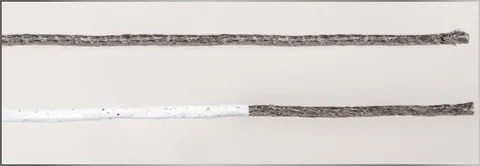 Die Extrusionsfestigkeit der geflochtenen eGraphit Packung hängt vom Verstärkungsmaterial ab. Baumwolle dient als Beispiel in erster Linie dazu das Garn auf Flechtmaschinen verarbeitbar zu machen und geht bei thermischer oder chemischer Belastung mit einem beträchtlichen Volumenverlust verloren. Als wirklicher Extrusionsschutz ist am besten eine feine Inconeldrahtmatrix geeignet, die das expandierte Graphitgarn engmaschig umschließt und sich im weichen Graphit einbettet.